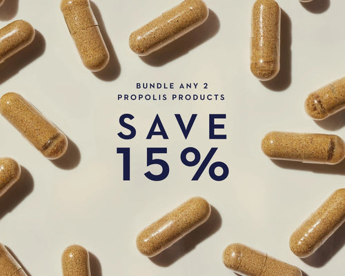 Purchase two qualifying propolis items and receive 15% off. Discount applies automatically at checkout. Must add both items to cart.