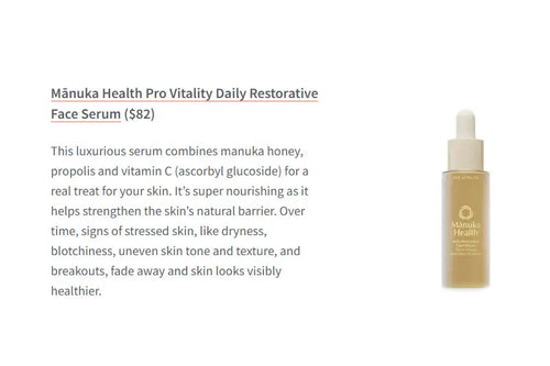 Discover why mānuka honey is hailed as New Zealand's best-kept beauty secret in POPSUGAR. This feature highlights the Eternal Renewal Regenerating Face Serum, infused with mānuka honey, royal jelly and bee venom. Packed with natural goodness, this luxurious serum rejuvenates the skin, promoting a radiant complexion and reducing the signs of aging.